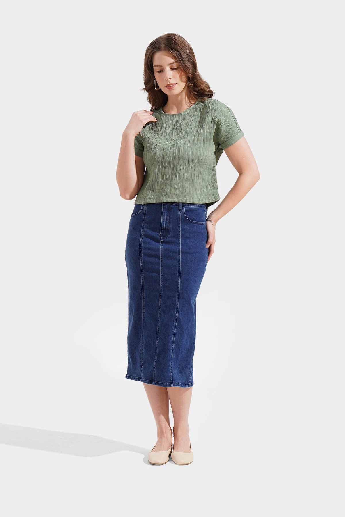 Model wears Small for color Sage Green