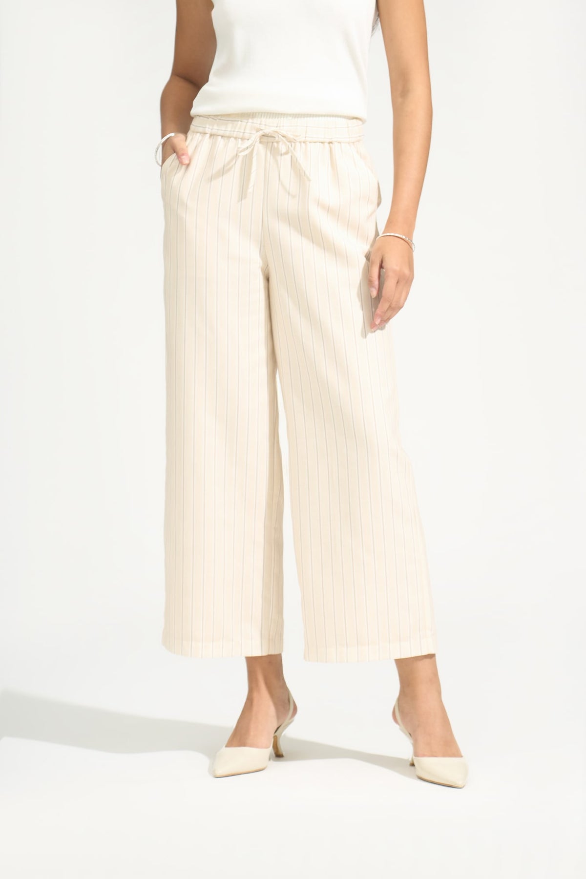 Striped Straight Leg Linen Trousers
