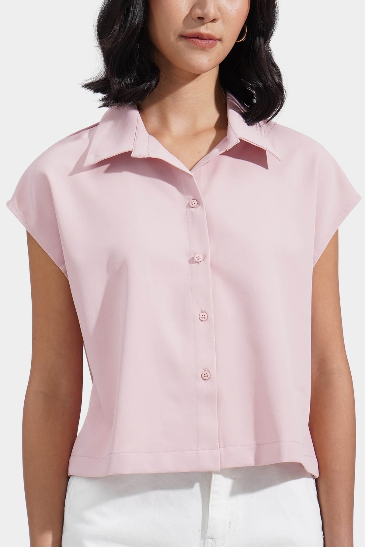 Model wears Small (wearing Soft Blush, White)