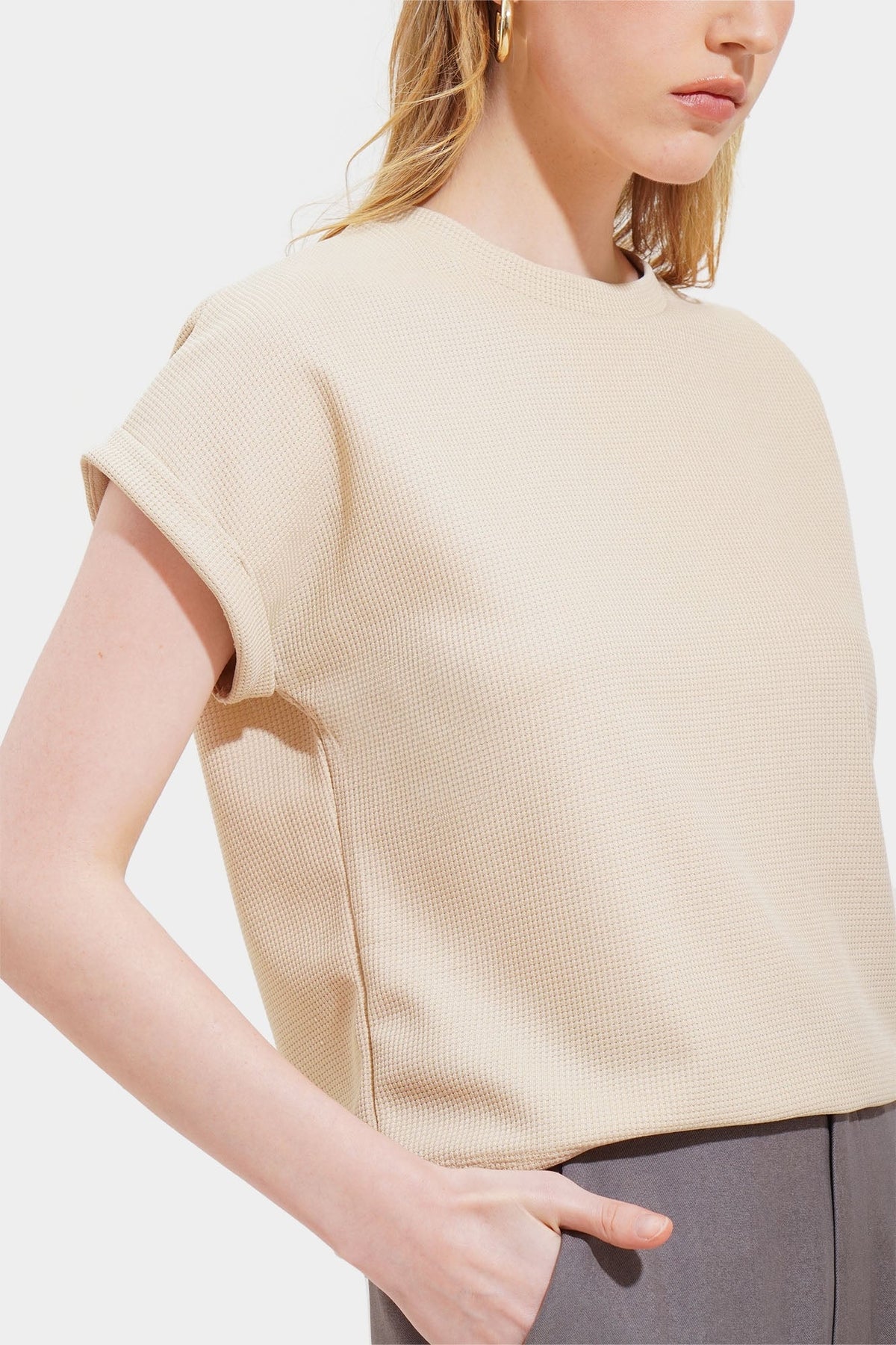 Model wears Small for color Cream
