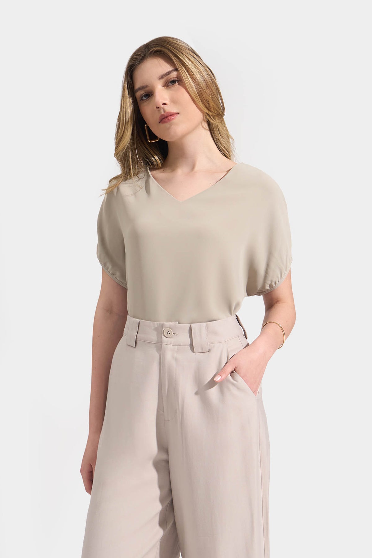 Puff Sleeves V-Neck Blouse