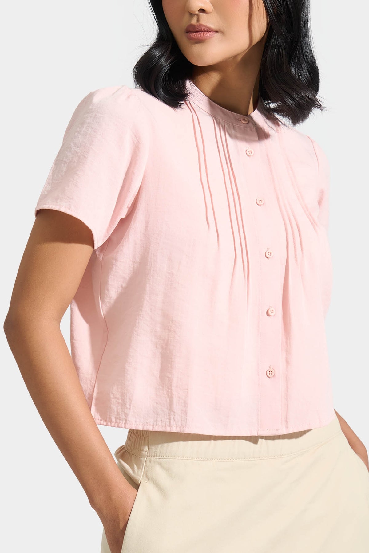 Textured Button Down Shirt with Pleats